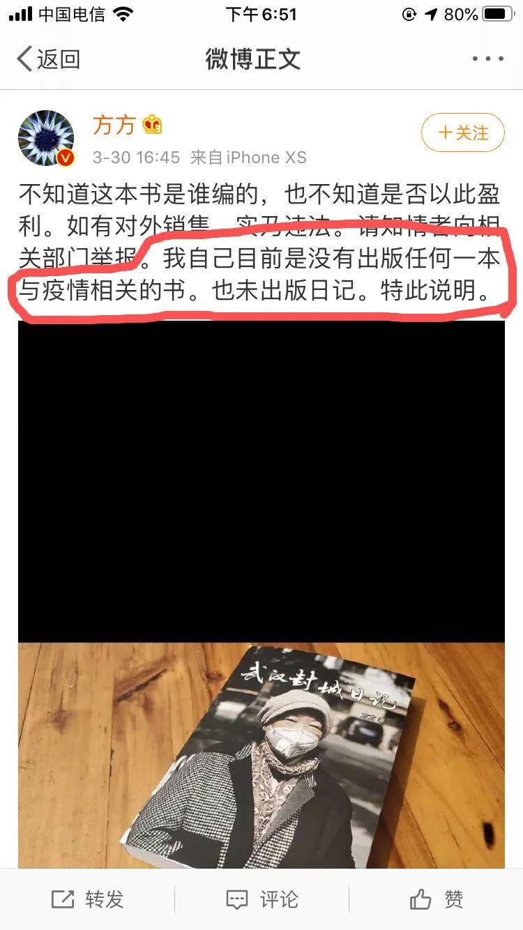 此时距离3月24日方方最后一篇日记仅仅过去了两周时间。距离方方声明自己没有出版任何一本与疫情相关的书,也未出版日记只过去了9天。