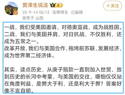 更不要说,如果“美国帮助了中国”是成立的,那反过来说中国帮助了美国也是成立的。反过来说中国帮助美国打败了日本,帮助美国成为了五常之一,帮助美国成了世界第一经济体,这么说美国认不?如果美国不认,我们凭什么认?