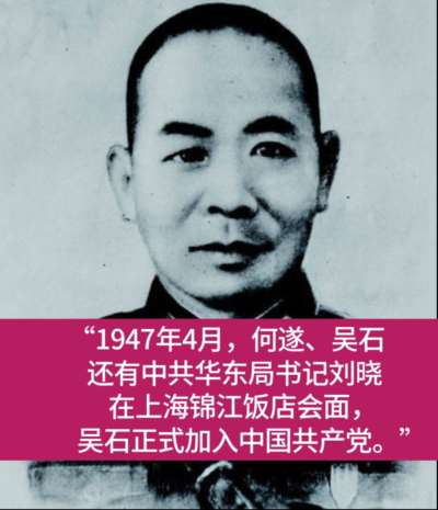 何遂生平传记中记录了吴石的入党时间:“1947年4月,何遂、吴石还有中共华东局书记刘晓在上海锦江饭店会面,吴石正式加入中国共产党。”证据来源:一,陈子燊主编、福州郊区(今仓山区)政协征集的《吴石将军英魂录》,1993年12月编印。二,《海南日报》2011年11月14日018版,记者范南虹《何遂家族的革命秘史》。三,《远望》2021年5-7月号(总392-394期)《一掬丹心在 虎穴藏忠魂──记吴石將军》