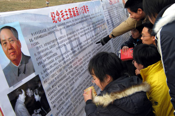 活动中,同学们有的在教学楼广场上观看“纪念毛主席诞辰115周年”系列展牌,有的聚集在校园广播下聚精会神的收听毛主席的伟大事迹,有的一起讨论着毛主席的历史功绩……