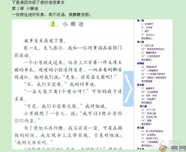 下面是四年级下册的选读课本