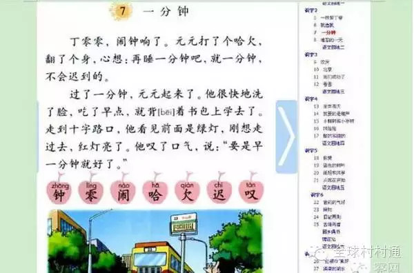 第7课 《一分钟》 在这里面用主人公元元,他因为贪睡而迟到来说明守时的重要性。这里的负面主人公恰是中国人的形象。