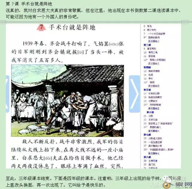 第7课 《手术台就是阵地》说真的,我对白求恩大夫真的非常敬佩,但在这里,他出现在本书倒数第二课选读课本中,可能还因为他有一个外国人的身份吧。