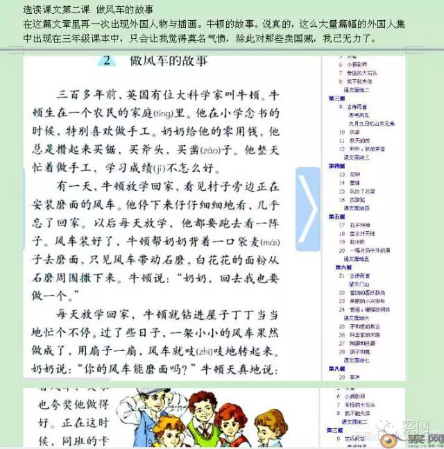 在这篇文章里再一次出现外国人物与插画。牛顿的故事。说真的,这么大量篇幅的外国人集中出现在三年级课本中,只会让我觉得莫名气愤,除此对那些卖国贼,我已无力了。