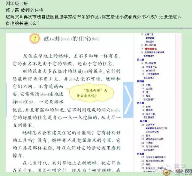 第7课 《蟋蟀的住宅 》这篇文章再次节选自法国昆虫学家法布尔的作品。你直接让小孩看课外书不成?还要选这么多他的书进来么?