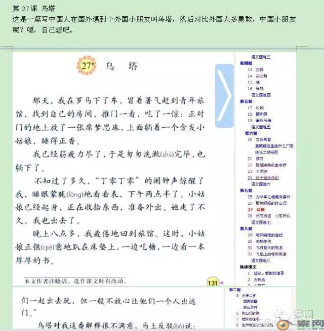 第27课 《乌塔》这是一篇写中国人在国外遇到个外国小朋友叫乌塔,然后对比外国人多勇敢,中国小朋友呢?嗯,自己想吧。