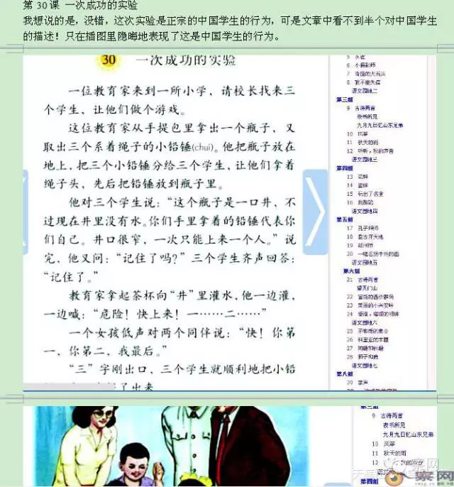 看看吧,这就是我们中国人的小孩正在学习的课本,都说未成年人是国家的未来,民族的希望。可人教版教材里的这些导向,究竟是要把我们的未来和希望导向何方?这是要全面摧毁我们的自信,重新树立起崇洋媚外的奴才思想吗?润物细无声,文化的教育就这样潜移默化了。还不警惕吗?还不警醒吗?