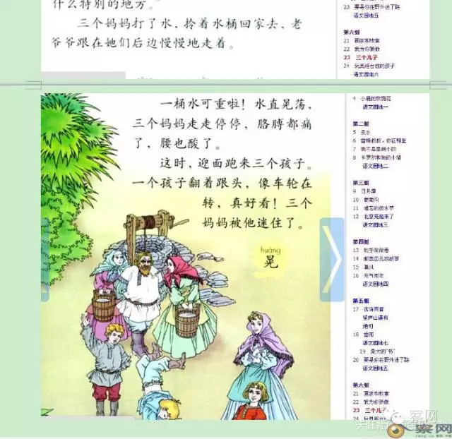 第23课《三个儿子 》也是没有出现外国人名,故事看上去也没有问题,可是配的图却是非常显而易见,让小孩知道这是外国人,没错,金发碧眼,高大上的外国人啊,再一次完美诠释了什么叫外国人的优秀品质。
