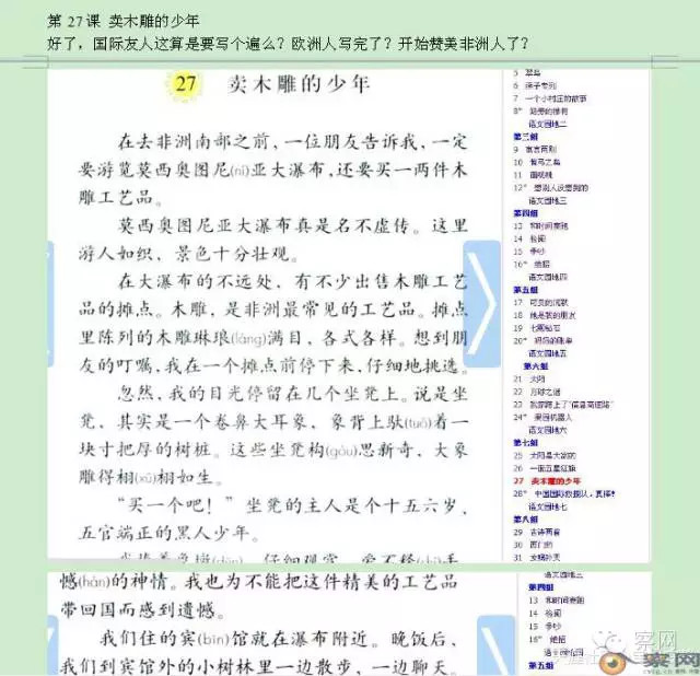 第27课 《卖木雕的少年》国际友人这算是要写个遍么?欧洲人写完了?开始赞美非洲人了?
