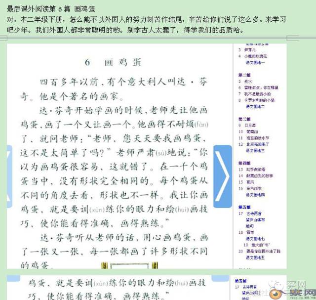 最后课外阅读第6篇 《画鸡蛋》,国外的优秀人物真多啊,来学习吧少年。我们外国人都非常聪明的哟。别学古人太蠢了,得学我们的品质哈。编者们,从古到今,创造了灿烂的五千年文明,”勤劳,智慧,勇敢,自强不息“的这些中华民族优秀品质,你们是给怎样表现的呢?