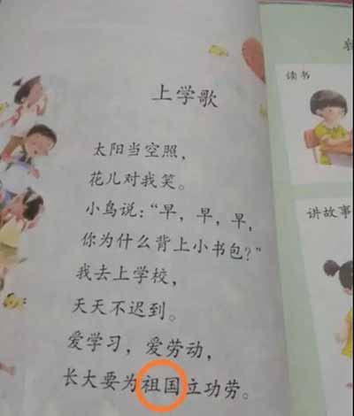 这种刻意的改动有两种可能性,一种是改动者认为“人民”一次比较虚幻、不可捉摸,“祖国”一词指向则很明确,那么这种情况下的改动就体现了改动者的无知,小学教材教育的是我们社会的未来,是整个意识形态安全的重要根基,这种无知是极不称职的体现;另一种可能性则是改动者十分清楚“人民”与“祖国”这两个词的含义,这种情况下的刻意改动则显得别有用心了。