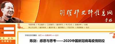 某网转发了陈剑先生的《感恩与思考——2020中国新冠病毒疫情防控》一文: