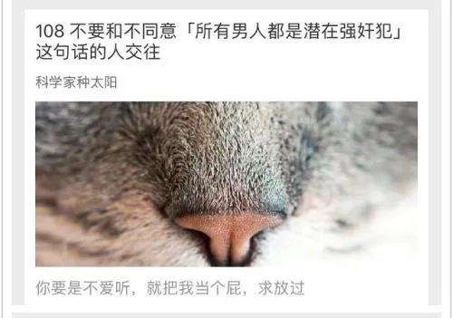 男性有性冲动不代表他们就想强奸,这本是一个做“人”的基本底线问题,在阐述观点的文章中,科学家种太阳竟然还把自己忍住强奸冲动,预谋犯罪中止当作自己的“善行”来夸耀。首先该反省的恰恰不是“所有的男性”,而是科学家种太阳自己。