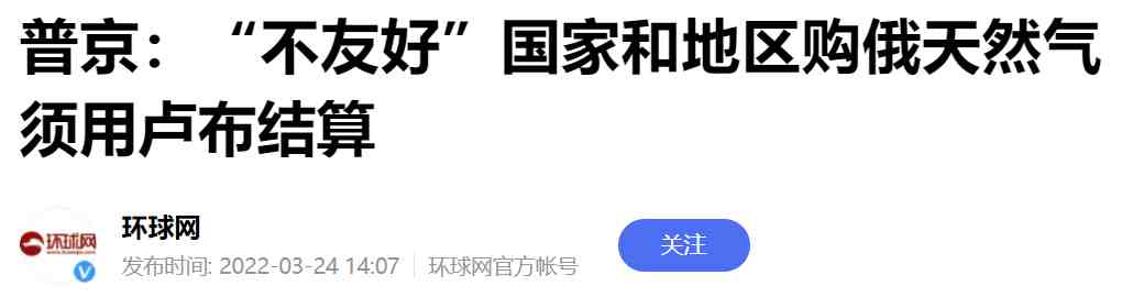 3月23日,普京宣布,俄向欧盟等“不友好国家”供应天然气时,将改用卢布结算。