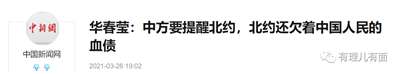 北约现在跟中国也有点较劲。三天前北约外长会上,他们把中国称为挑战。中方想提醒北约,北约还欠着中国人民的血债。北约不要忘了,1999年以美国为首的北约严重违反有关国际法和国际关系基本准则,悍然对南联盟进行轰炸,造成了包括三名中国记者在内的大量无辜平民遇难。逝者已矣,但生者更需要警醒和反思。