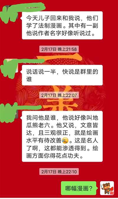 说来也巧,前段时间,我的大学同学在群里告诉我,他儿子上课时,老师给他儿子看的漫画就是我画的,真的是感觉太神奇了,没想到,有一天,我同学的儿子竟然在课堂上能看到我画的漫画,忽然间,感觉我坚持画漫画和写《美国史记》还是很有意义的!让复旦教授严锋失望了,已经有很多孩子的说话和思维方式被我感染了……