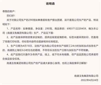 包装为什么简易?还是那句话:怕你们挨饿!有网上传言说一些上海人饿急了连绿化带都吃,当然这只是段子。平时习惯喝咖啡、红酒的人肯定不会吃这些东西的,但作为一家老字号食品公司,他们捐赠的不仅仅是香肠,更是如皋人民纯朴的情感、火热的爱心,他们连夜加班加点赶制出来的天下名品,不是给你们来欣赏精美的外包装的,是免费送给你们救急填饱肚子的。