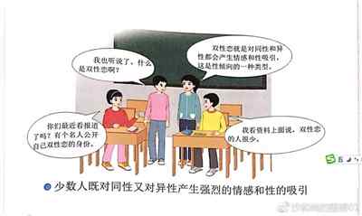 给6年级11-12岁左右的孩子介绍性倾向时,诱导孩子性倾向包括“异性倾向、同性倾向、双性倾向,即人们所说的异性恋、同性恋、双性恋。……每个人都会在日常生活和人际互动中不断探索形成自己的性倾向,最终形成较为稳定的性倾向。”