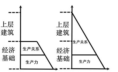 “民主集中”的水平由生产关系决定,与生产关系的阶段性状态相对应,同时也是生产关系的政治表现。生产关系是人们在物质资料的生产过程中形成的社会关系,是生产方式的社会形式。在传统历史唯物主义中,生产力与生产关系、经济基础与上层建筑是具有重大理论意义的两对范畴。我们可以用图2来更深入地理解它们的关系。