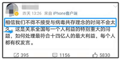 如最近有人大谈“法律”,如果你真的以为他在谈“法律”那你可就太天真了,他这是在忽悠老百姓跟我们的抗疫政策对着干呢。要知道,此人可是“与病毒共存”的铁杆支持者,早在半年前,此人就说过“相信我们不得不接受与病毒共存理念的时间不会太久”了。