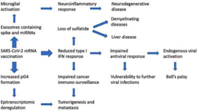 1.mRNA yi.苗会促进更长的生物半衰期、及新.冠.刺突蛋白的持续合成;2.刺突蛋白具有神经毒性,会损害 DNA 修复机制;3.该苗接种会严重损害 I 型干扰素信号,从而导致先天免疫受损;4.蛋白质合成中存在潜在严重干扰,这些干扰可能与神经退行性疾病、心肌炎、免疫性血小板减少症、贝尔麻痹、肝病、适应性免疫受损、DNA损伤反应受损和肿瘤发生有因果关系;5.密码子优化导致mRNA 具有不可预测的复杂效应。
