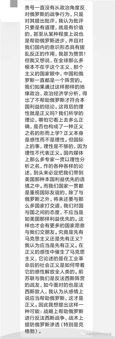 其中槽点数不胜数,包括对中俄的捆绑,包括对正义的虚无化,包括对中国利益的曲解,包括对各国尤其是弱国对主权和领土完整的要求的漠视,包括对马克思主义的曲解,等等等等。