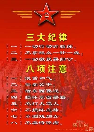 挫败秋收起义哗变之后,毛泽东很不容易才把队伍带到井冈山。从1927年10月到1929年2月,在这一年半的时间里,毛泽东率领红军,克服了难以想象的困难,战胜了数倍于己的敌人,红军由原来的1000余人,发展到10000余人。创造这一奇迹的就是毛泽东人民子弟兵的建军思想,这个思想,到后来形成了著名的《三大纪律八项注意》。