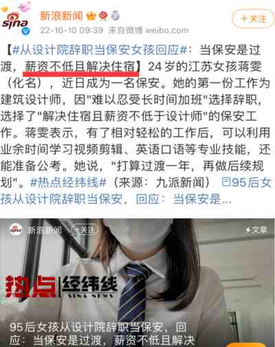 而是当保安的薪资待遇,居然和设计师差不多,并且朝七晚七不加班,还包吃住。