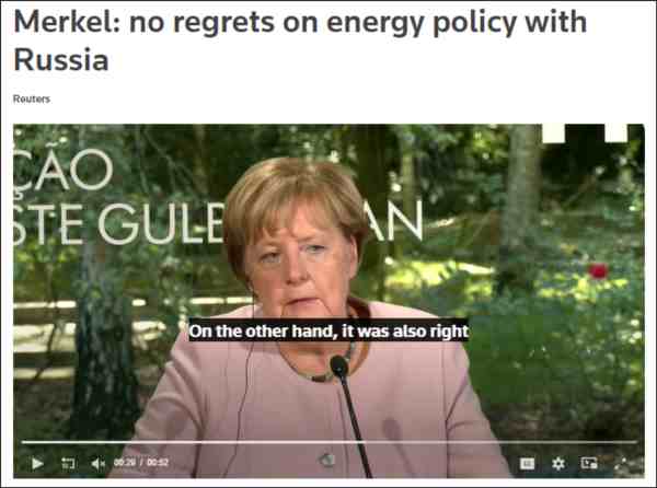 她讲这个话其实是有原因的,因为最近很多人把德国遭遇到的能源危机,归咎于默克尔执政时期能源战略倒向俄罗斯,过于依赖俄罗斯的天然气。