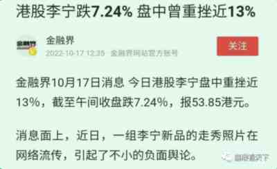 受此事影响,10月17日,李宁股票大跌,市场的反应是最直观的。