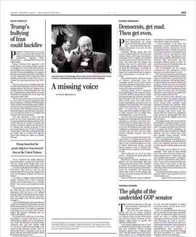 华盛顿邮报为首,发布重要文章「消失的声音」,说美国的价值观是怎么了?我们居然和压制自由声音的凶手合作,美国还能好得了吗?