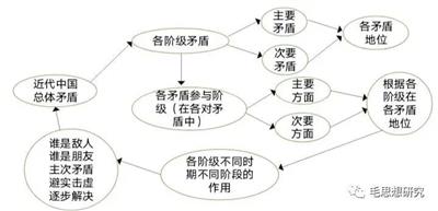 认清当时中国社会全局状况,就要对这些不同的矛盾的各自特殊的状况进行分析,并具体的分析各阶级,也就是这些构成各个矛盾的各个特殊方面在各个矛盾中的具体的特殊的情况,根据不同阶级(矛盾方面)和不同的矛盾的特殊情况以及在不同时期这些矛盾和构成矛盾的方面在不同时期地位的变化,综合判断“谁是我们的敌人,谁是我们的朋友”,以及判断“什么是主要矛盾,什么是次要矛盾”。