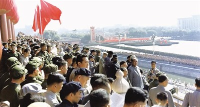 1966年国庆节,73岁的毛主席在天安门接见来自全国各地的革命群众,3000多名工农兵代表分批登上天安门城楼参加国庆大会;