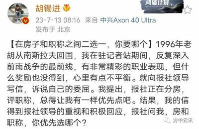 可是胡锡进甚至没有给付国豪房子和职称的选择——
