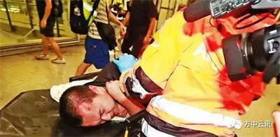 付国豪被港警救出时头上有伤痕,并一度陷入昏迷,甚至当他躺在担架上时,还有手持美国国旗的废青对他进行追打、投掷水瓶。