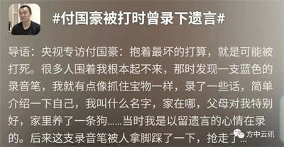 然而付国豪表现得足够英勇了,他在事前有了预感,录下了遗言——