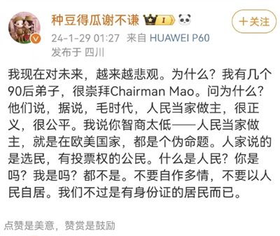 一位新闻学的教授,因为自己的学生喜欢毛主席,竟然觉得“恐慌”,“对未来悲观”。