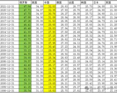 (5)日本和英国最低,都不到25%,其中日本24.80%,曾经的日不落帝国仅为21.30%。