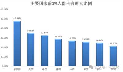 1、按wid(世界不平等数据库)统计,全球主要国家中,前1%人口所拥有的财富占比如下图: