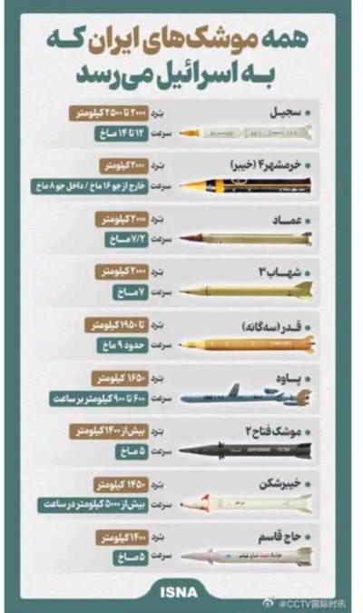 与此同时,伊朗学生通讯社还在4月7日发布展示了伊朗的9款导弹,并声称“都能打到以色列”。