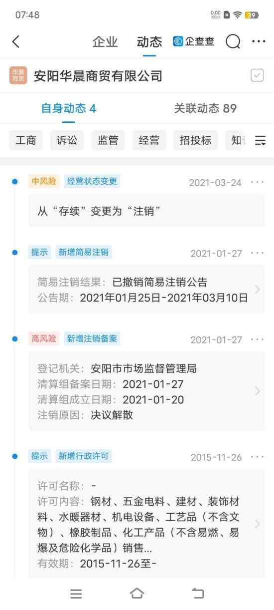 并且,这个安阳华晨商贸国企,借钱1.3亿元之后。未经过我们债权人同意,甚至都没有告诉我们债权人,悄悄的:在2021.3.24号,注销了。这是很明显的:国企大额借钱1.3亿元,的国企逃债型注销。