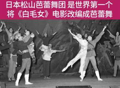 早在1955年,日本松山芭蕾舞团就世界第一个将中国电影《白毛女》改编为芭蕾舞剧,致敬中国红色经典。中国将电影《白毛女》改编为芭蕾舞剧的首演时间为1965年,改编为芭蕾舞电影为1972年。