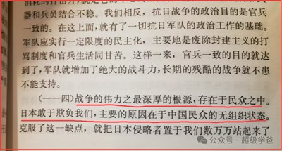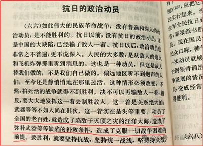 那就是,动员了全国的老百姓,就造成了陷敌于灭顶之灾的汪洋大海,造成了弥补武器等等缺陷的补救条件,造成了克服一切战争困难的前提。