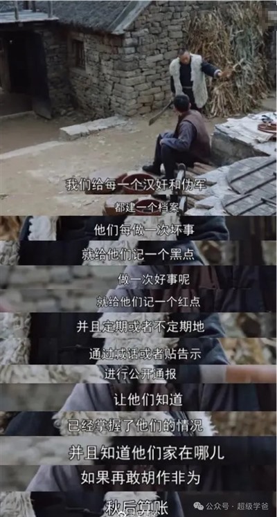 最后还建立了一个KPI机制,也就是红黑薄。什么意思呢?就是给所有伪军和汉奸搞了个名单,然后记账,为日本做事画黑点,为党和人民做事,画红点。