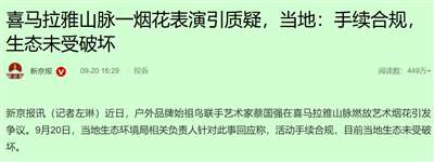 9月20日,当地生态环境局相关负责人针对此事回应称,活动手续合规,目前当地生态未受破坏。
