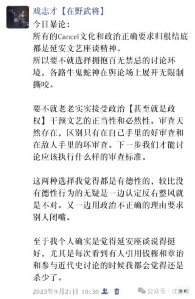 他有很多这样的观点表达,我未必都认同,但我佩服他能在那种环境下顶住社会压力说出来。所以核心还是:不要害怕,要有表达的勇气。