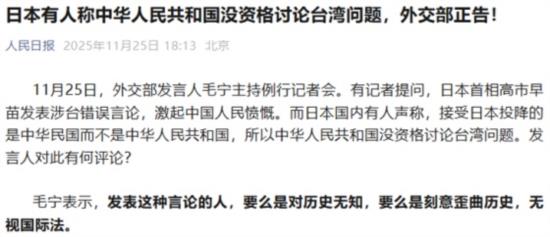 最近,我们不断给高市早苗施压,要她“撤回错误言论”,还致函联合国秘书长,就高市早苗的错误言行阐明立场,表示“如日方胆敢武力介入台海局势,将构成侵略行为,中方将坚决行使《联合国宪章》和国际法赋予的自卫权,坚定捍卫国家主权和领土完整”。