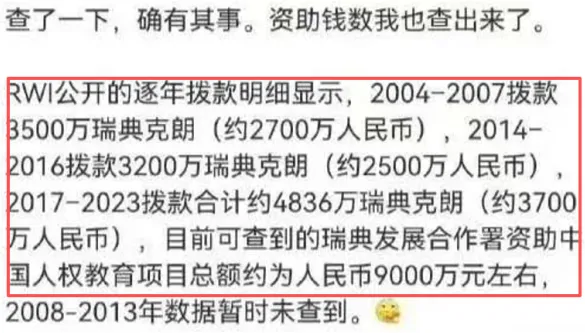 前两天,有网友扒出推动“封存”的“法学家”长期接受西方“资助”,连“资助”的金额以及“资助”的用途都晒出来了,从截图来看,累计“资助”金额竟高达9000万元,其中光2004-2007三年就拨款2700万元,二十年前的2700万是什么概念,能让多少人“赴汤蹈火”,想想都让人头皮发麻。虽然网友的这波操作让“法学家&r