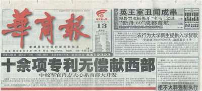 2000年8月,在第9届中国专利新技术新产品博览会上将14项专利技术对西部地区无偿转让, 支援西部大开发。