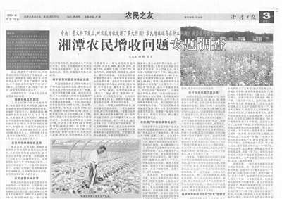 2004年7月,利用休假带领全家开展“农民增收”问题专项调查 ,写出1万余字调查报告,《湘潭日报》整版刊发。
